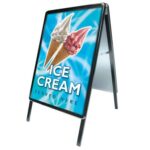 The simple a boards offer you three poster sizes A2, A1 and 20″x30″. Furthermore we offer two colour ways, standard silver anodised or black powered coated.