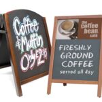 Our Premier Chalk Board Pavement Sign is made from high quality 45 x 45mm softwood frames in a dark oak finish from renewable sources. In addition, the Premier Chalk Board comes with heavy duty galvanized steel hinges and stylish locking arms. Available in 2 sizes, small and large, with a visible display areas of 550mm x 805mm and 717mm x 1041mm respectively. Furthermore the chalk board panels are reversible meaning 4 messages can be available on just one A-Board.