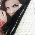 The Contra Vision perforated window film effect is most commonly achieved by applying a self adhesive window film to the glass. The film contains areas of printed graphic (a print pattern) as well as unprinted see-through areas covering up to 80% of the film. When looking at the side with graphics, the eye is drawn to the printed colours as they reflect more light than passes through the see-through areas (provided the lighting on the outside is brighter than the inside). The secret behind the one-way vision effect is ensuring the printed graphics are obscured or hidden from the other side of the glass. This is best achieved by having a black “backing” which covers exactly all the printed areas on the film without blocking the see-through (unprinted) areas. When looking through the reverse side of the Contra Vision, the view coming through the film is dominant because the black layer absorbs light and is less apparent to the eye.