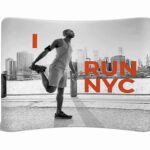 The curved fabric backwall includes a lightweight but durable frame that combines to create a strong long lasting display stand along with a one-piece dye sublimation printed graphic which machine washable at 30° and can be ironed for a sleek, fresh out of the box effect without fading.